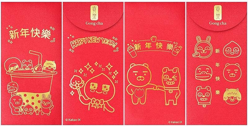 如何購買:即日起消費滿NT$159,且含1杯為KAKAO FRIENDS聯名系列「KAKA果TRUE戀」、「好巧芋見你」、「莓好相聚時光」以上任一新品,即可以將KAKAO FRIENDS貢喜發財紅包袋帶回家。