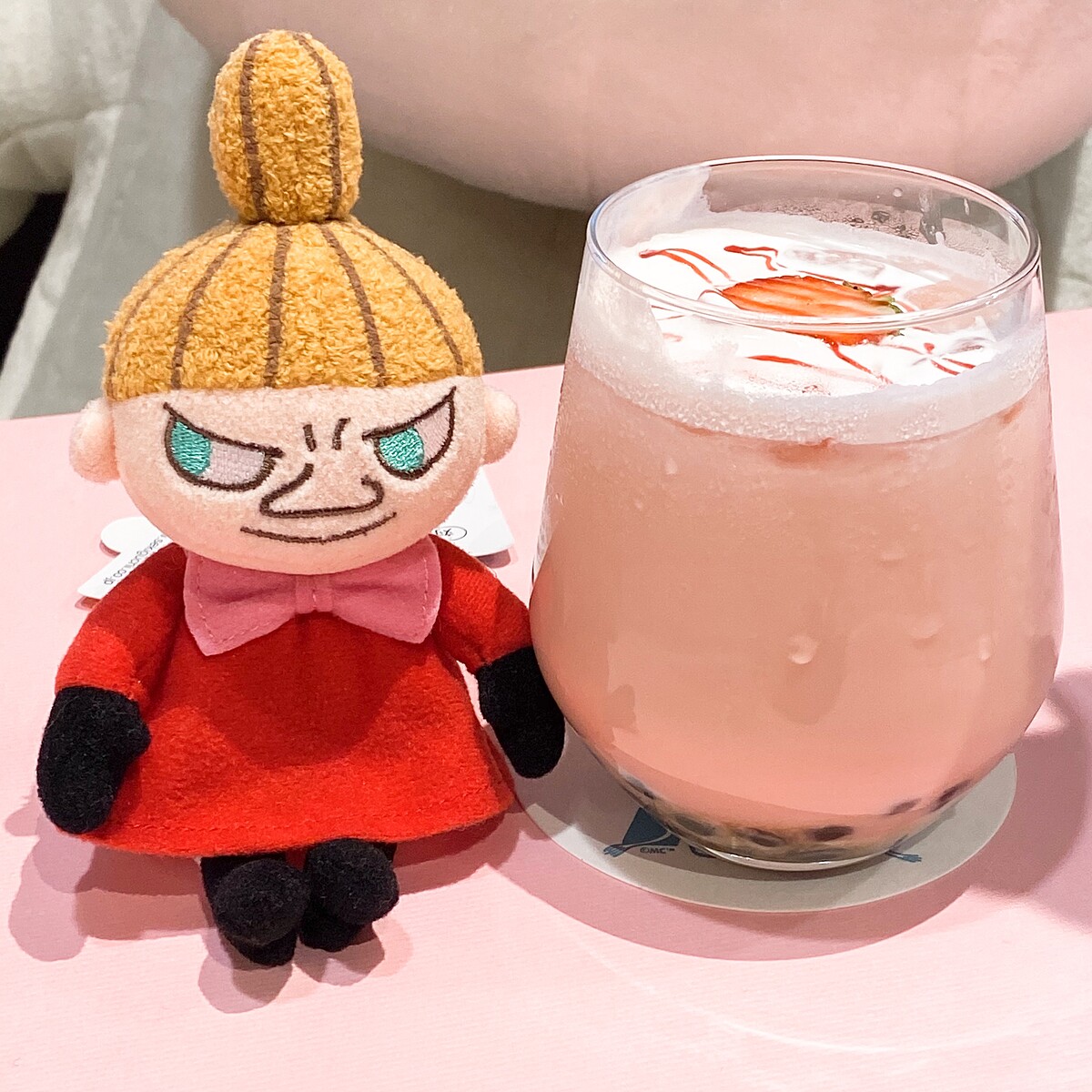 小編私心推薦真的好喝!選用黑糖珍珠搭配草莓奶茶,Q彈飽滿的珍珠,與香甜的草莓奶茶完美結合,再搭上嚕嚕米草莓生乳捲剛剛好!