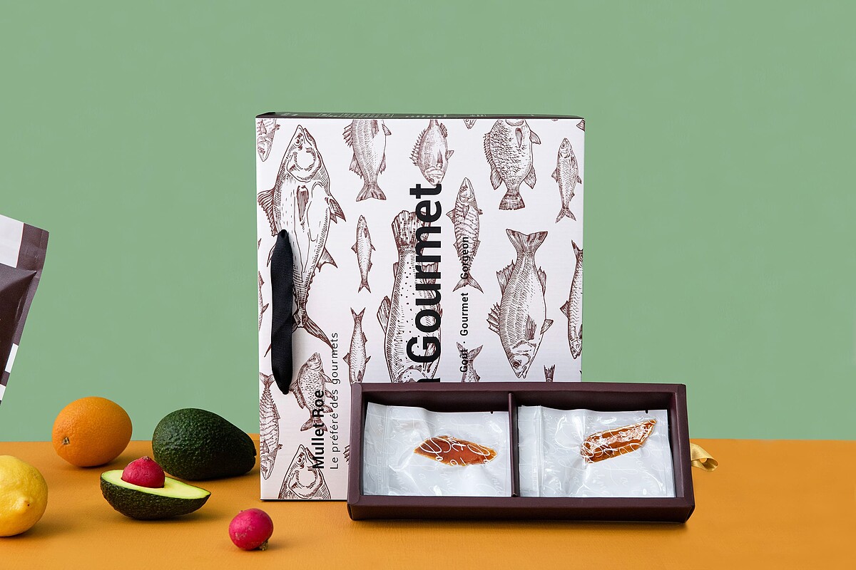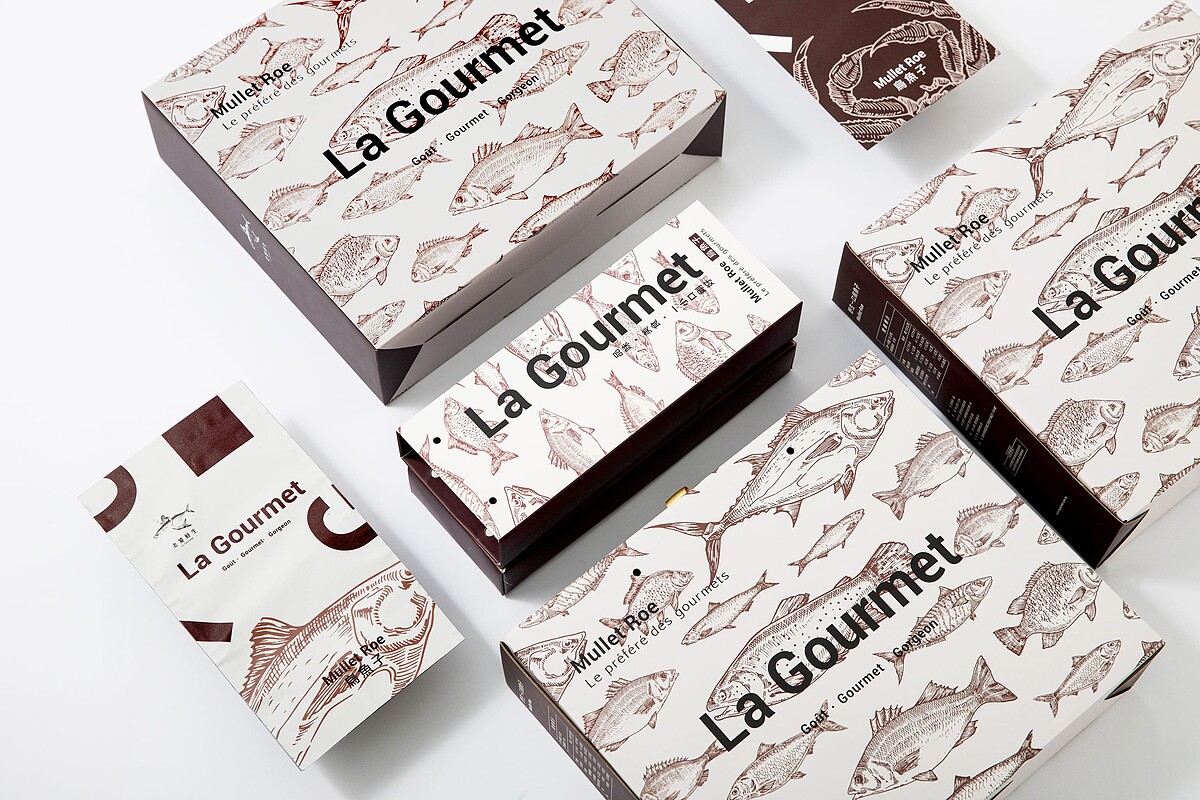 在台北信義新光A11特別推出了百貨限定設計禮盒,以高雅的勃根地紅搭配象徵豐收的魚群為出發,並以精品巧克力的包裝為發想,讓烏魚子宛如精品甜點般高貴優雅,最時髦的過年禮盒非它莫屬。