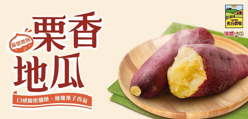 「栗香地瓜」一年只收成兩次,吃起來口感綿密如栗子般香甜而得名,採用優質健康種苗且100%契作生產,以現蒸模式販售,主打可連皮一起吃。