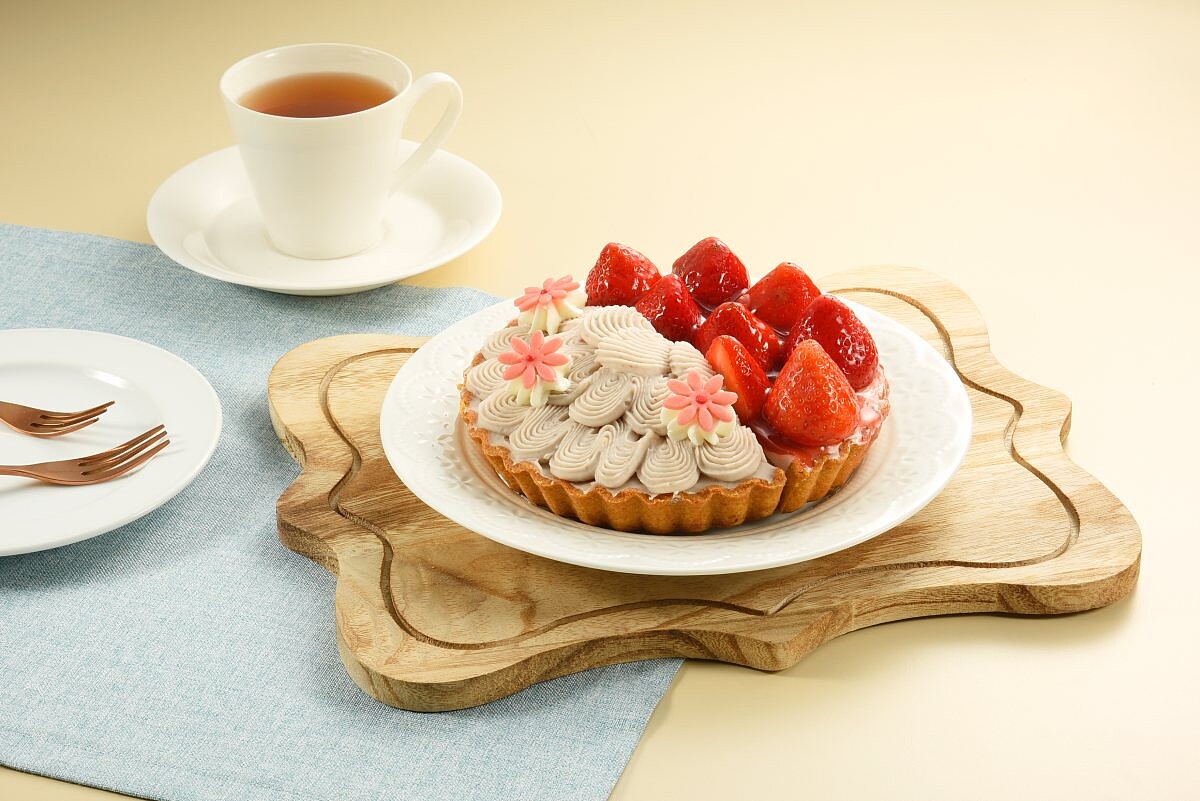 一次能享用芋泥與草莓真的太療癒了!香酥塔皮上加入香醇濃郁帶有顆粒的芋泥餡、奶霜與泡芙蛋糕,讓人一吃就愛上!另一半邊則是放上新鮮草莓,香甜的草莓搭配厚實酥脆的塔皮與草莓卡士達奶油淡淡的莓果酸味,快把握草莓季的尾巴吃好吃滿。