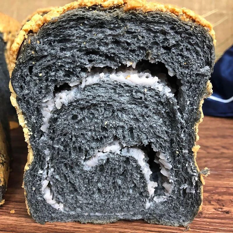 在湯種吐司中加入竹炭粉,以創新的菠蘿酥皮製成,一口咬下外酥內軟,口感紮實又綿密,吃得的芋頭香氣,無論是當做早餐或是下午茶都超適合。