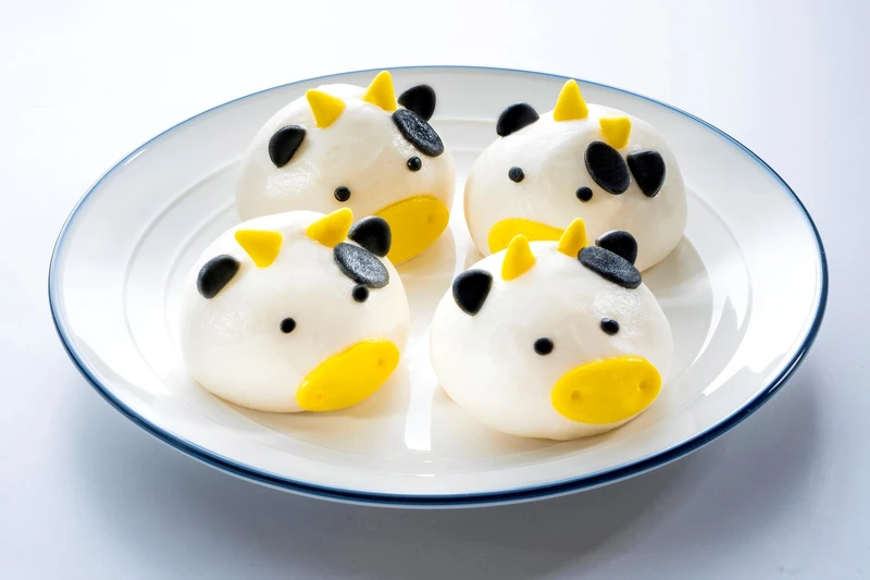 將港式點心融合牛年的創意發想,以純手工捏製而成,加上濃郁的芋泥與鹹甜的流沙餡,絕對是老少咸宜的點心。