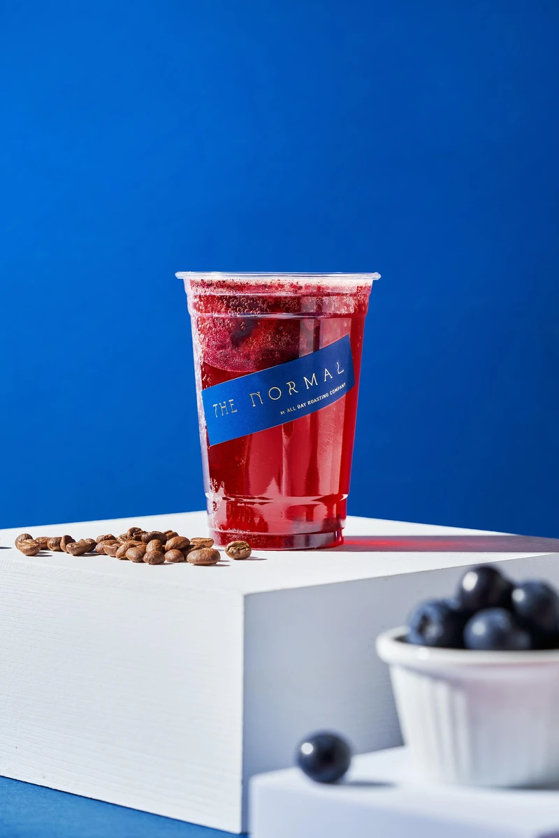 THE NORMAL精心研發出全新的藍莓泡泡咖啡特調,以最能呈現咖啡風味的淺烘焙單品咖啡為基調,選用帶有莓果風味的衣索比亞提波波卡咖啡豆,搭配當新鮮水果素材,調配出藍莓泡泡咖啡特調,入口感受藍莓香氣與咖啡完美結合,品嚐起來非常清爽,即使平常不敢喝黑咖啡的人,是想入門單品咖啡的好選擇!