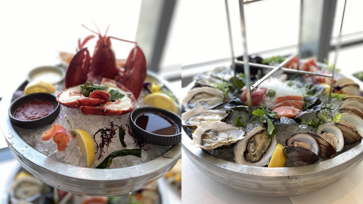 Sea To Sky沒有低消限制,不只有各國海鮮料理,更規畫一區卡布里台板前席,可以享用壽司捲、生魚片,提供多樣化的用餐體驗。2/26開放電話預約,3/1試營運,僅先提供限量預約席次;3/10預計連同電梯出口右手方的「天際酒吧」一同盛大開幕。