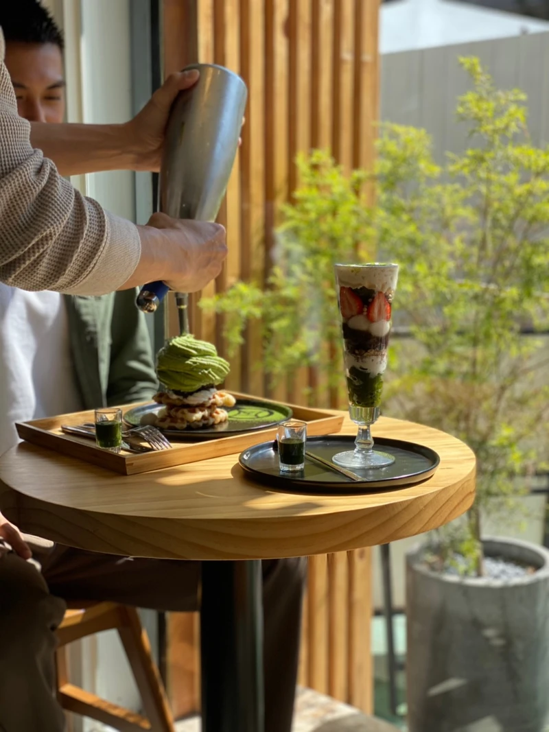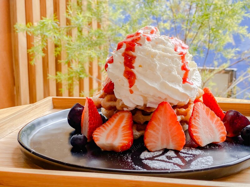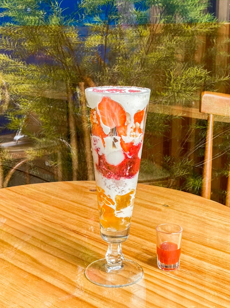 目前共有抹茶、季節水果可以選擇,還有草莓季必吃的草莓鬆餅!