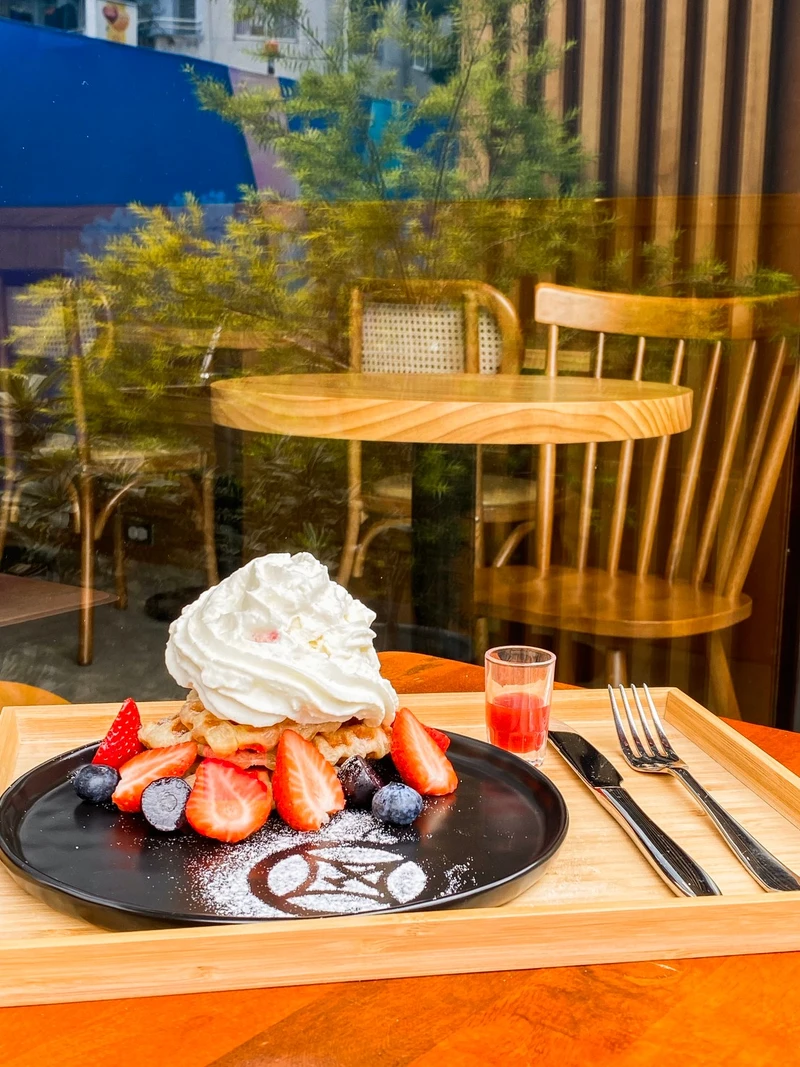 二店的空間也大上許多,透明的落地窗與店面藍色的牆面在搭配木質調的桌椅,整體空間非常溫馨好拍,捷運東門站的美食推薦再加一啦!