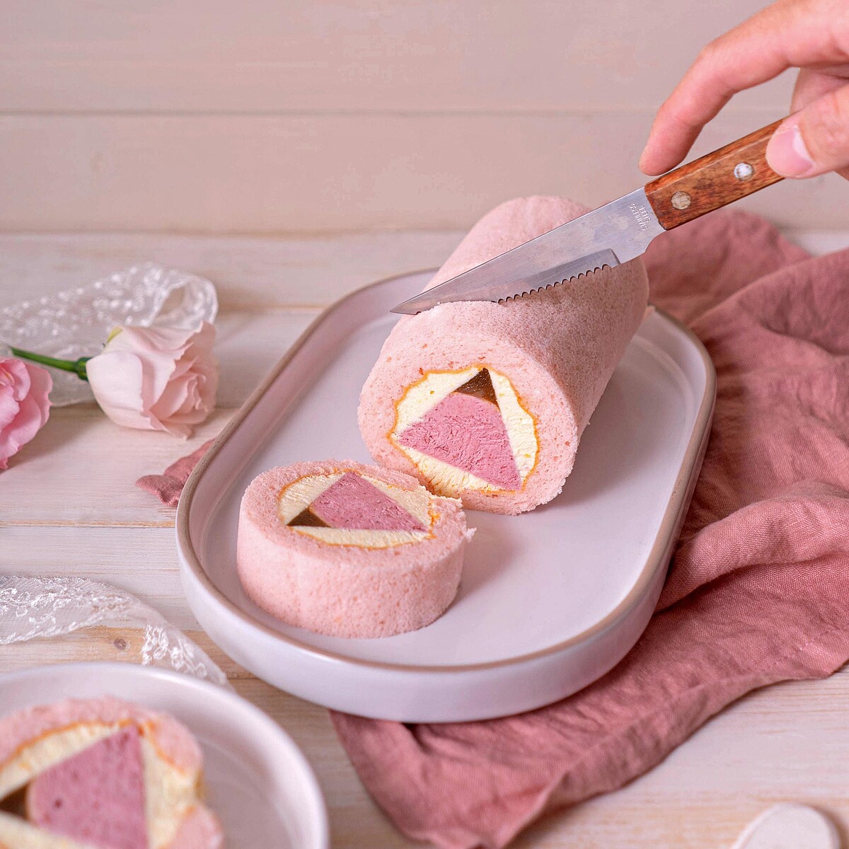 金帛手製推粉紅富士山「瑰蜜美人」情人節限定限定禮盒啦!讓經典的富士山生乳捲美出新高度,帶有櫻花粉的蛋糕體,光是外型就狙擊少女心!