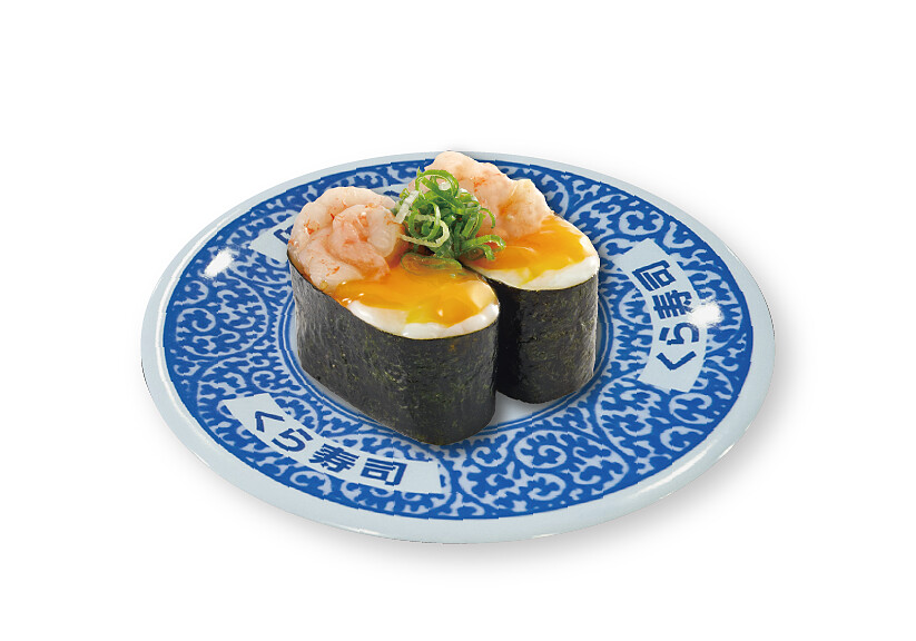 鹽味半熟蛋甜蝦仁軍艦
