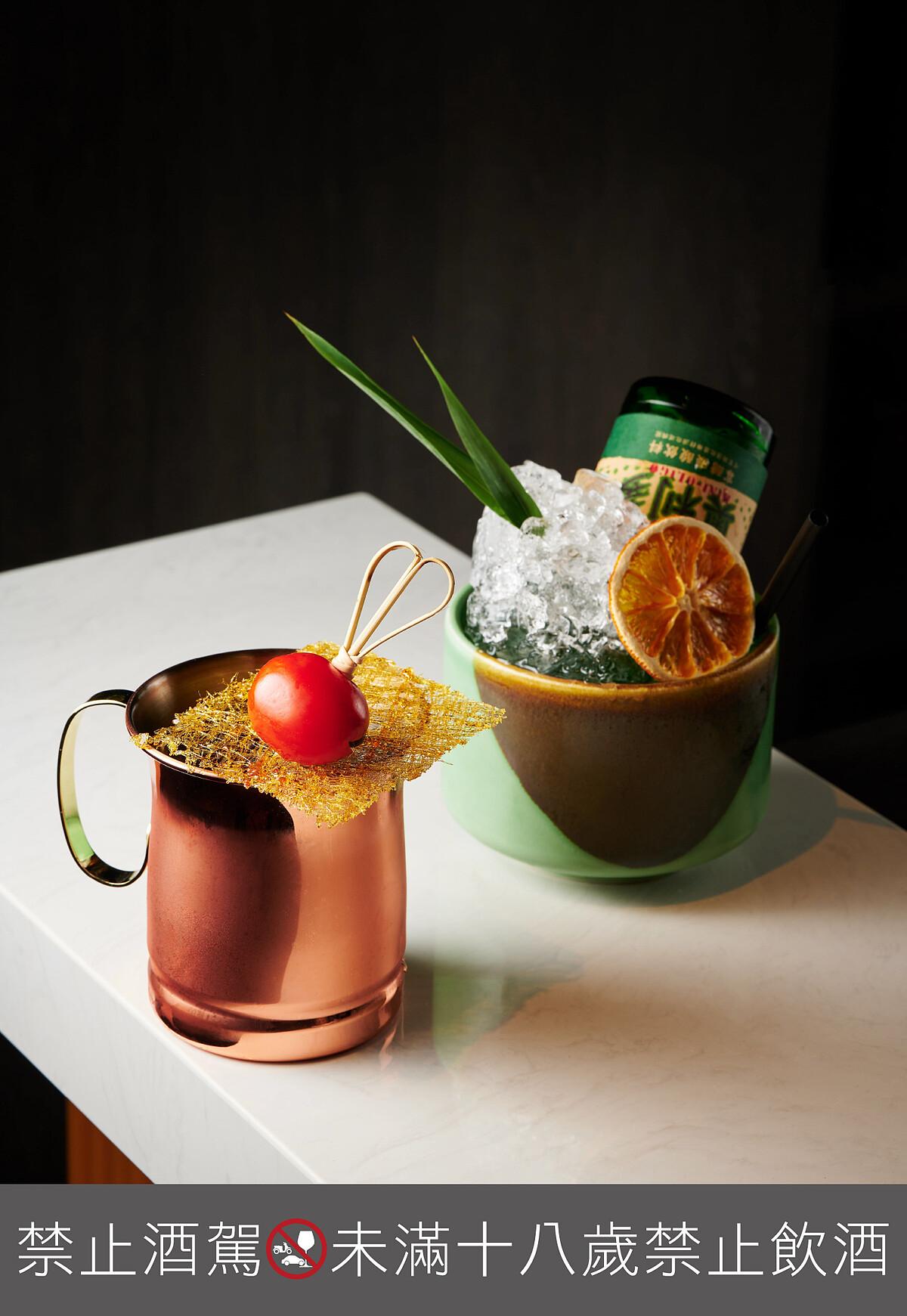 啤酒調酒以「柏克金啤酒」為基調,呈現德國盛行潮流啤酒喝法,「印象派酒鬼1號」則是選用陪著台灣人長大「伯朗咖啡」與柏克金德式黑啤酒,咖啡迷人的焦焙風味加上西瓜的香氣入口難忘;「野獸派酒鬼2號」使用世界烈酒競賽常勝軍「噶瑪蘭威士忌」旗下琴酒與柏克金科隆啤酒調合,有著德式傳統啤酒鹽小麥風味,另外還有三款德國在地風味啤酒調酒,不用出國,在台灣即可體驗德國潮流喝法;以時間旅人帶領消費者體驗三大系列自創調酒,過去代表「回憶」、現在代表「青澀」、未來代表「綻放」,分別以記憶中的味道、果實與花草茶做為基底發想,吃燒肉串燒配上入口滑順特色調酒的絕妙滋味,讓你一杯接著一杯不停歇。
