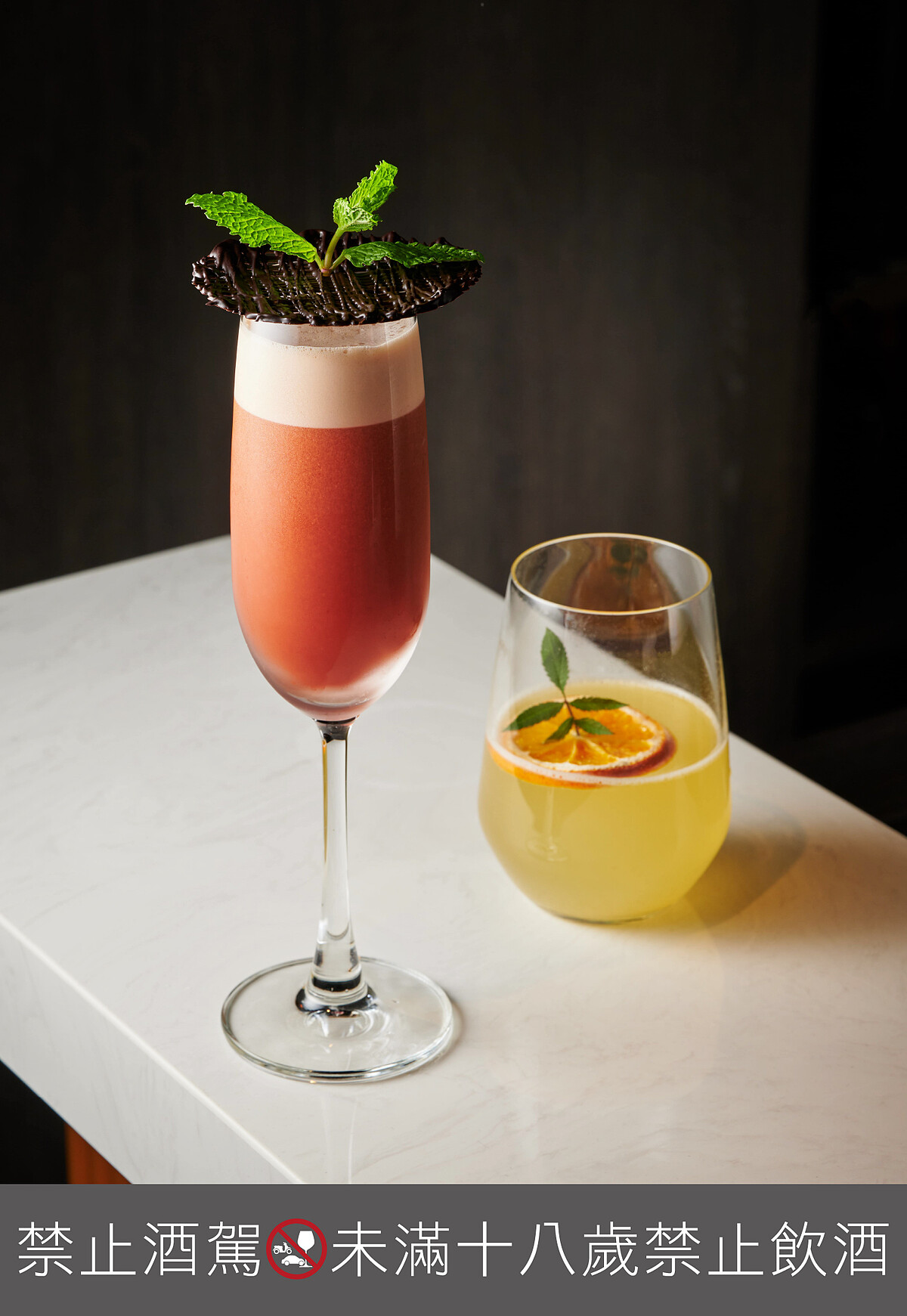 使⽤自製奶洗伯爵茶琴酒,香甜莓果風味為主,品飲伯爵茶香及些微柑橘香氣,口感綿柔。