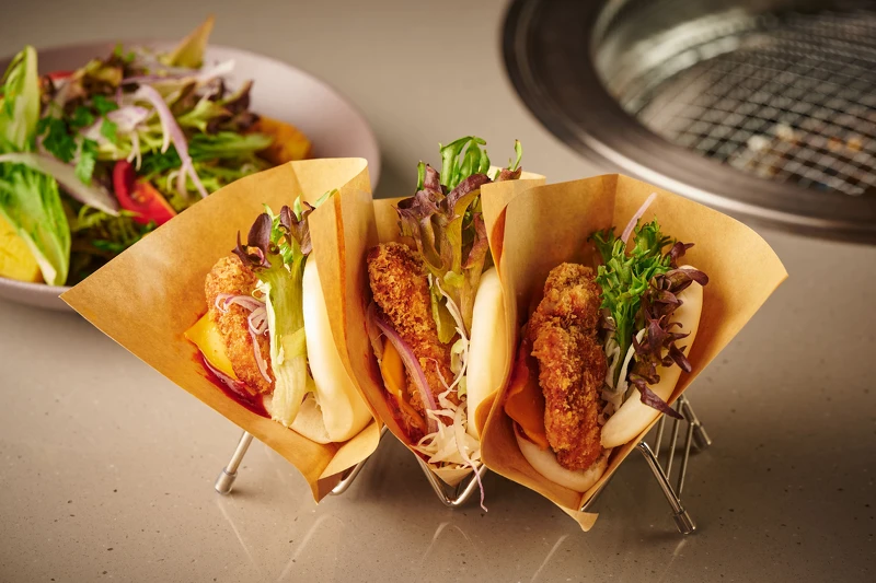 以台式漢堡-刈包作為創意發想,選用台灣在地養殖的豬里肌製作成日式炸豬排,搭配自製的韓式鮮味辣醬、鮮脆生菜、切達起司片,讓刈包有著全新口感與風味。
