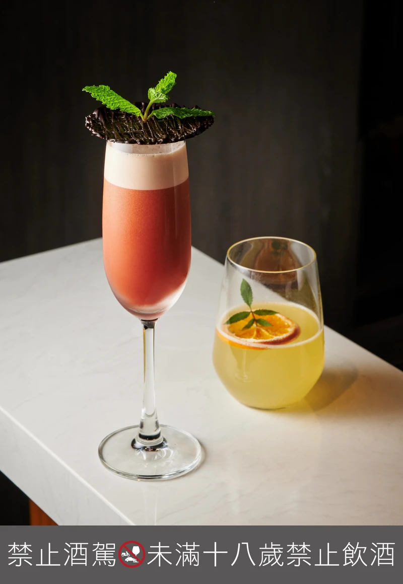以梅酒、⾃製烏梅糖漿與蔓越莓汁,調製成小時候常吃的蜜餞風味,整體偏酸及微鹹,入口瞬間記憶湧現。