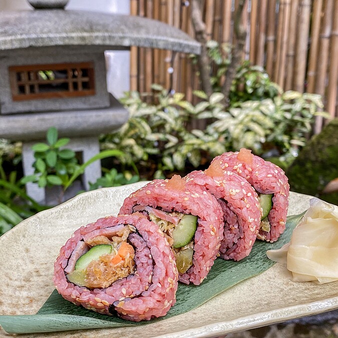 飽滿扎實的壽司捲中加入滿滿的餡料,包入日式炒豆皮,一次品嚐酸甜鹹三種風味在口中擴散,此款壽司也可以外帶,絕對是野餐必備美食之一!