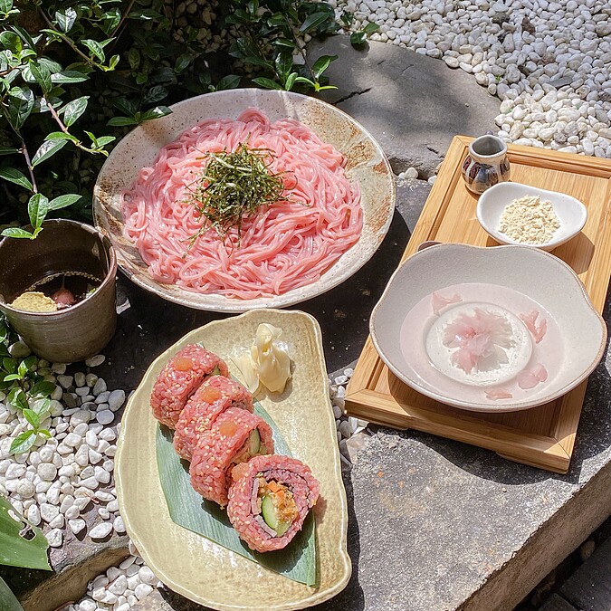 日式職人手作烏龍麵穗科這次也讓餐點染上春天的粉色,光是視覺就超療癒!