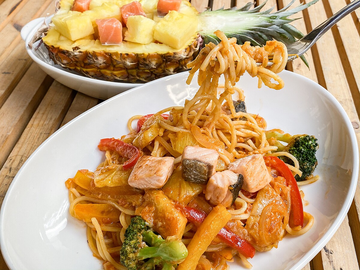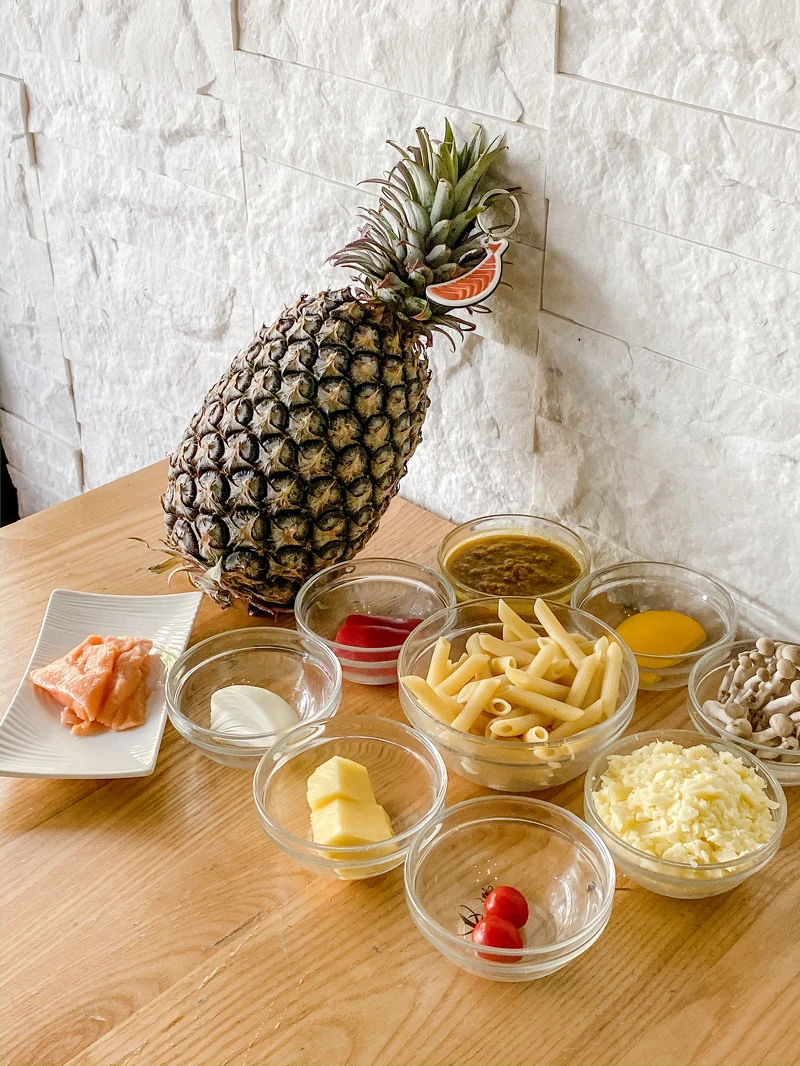 鮭魚軟嫩的口感是不少海鮮控的最愛,美威鮭魚專賣店在春季也推出2道新餐點「地中海嫩烤鮭魚義大利麵」、「咖哩焗烤鮭魚筆管麵」,這次美威鮭魚廚藝教室教大家製作出以鳳梨入菜的升級版本,用最著時的鳳梨打造出超美味的3到鳳梨料理吧!
