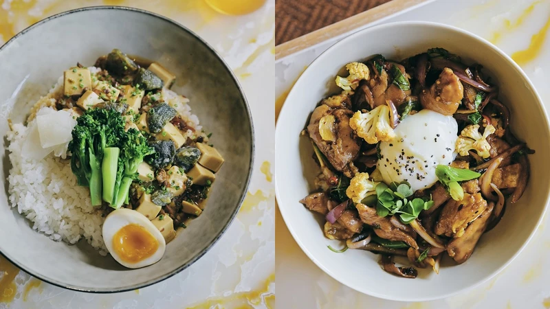 除了奶茶飲品外,台式碗型料理也不能錯過,像是用三杯醬汁醃漬並去骨的改良版「辣味三杯雞飯」、「麻婆皮蛋豆腐燴飯」,以及「海鮮鍋燒意麵」,是適合上班族的快速食尚之選。