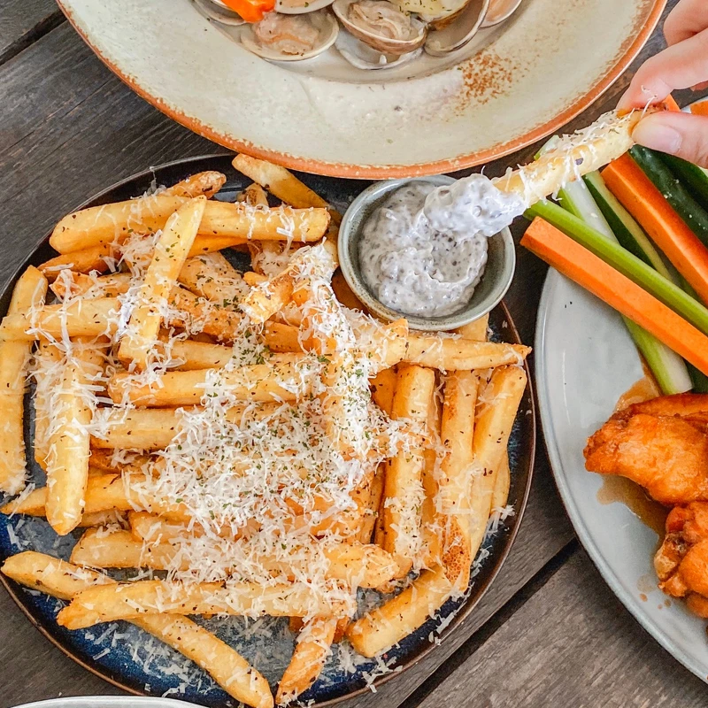 除了必吃雞翅外,在這裡也有不少炸物可以選擇,像是香蒜薯條、黃金地瓜等,其中松露薯條也是深受大家喜愛,炸至金黃酥脆的酥條再搭配自製松露醬,超濃郁的松露滋味,松露控們的首選推薦!