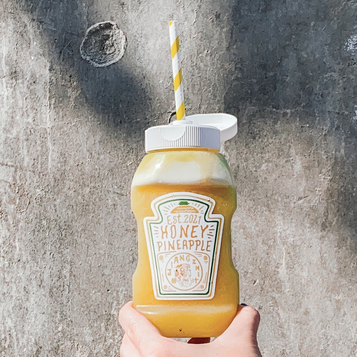 加入台灣在地的金鑽鳳梨與獨家的鳳梨茶與甘梅粉、蜂蜜,最後再加入些許的芥末醬,喝起來完全不突兀,感受香甜的鳳梨果香,炎炎的盛夏中來一杯超清爽的鳳梨汁剛剛好!