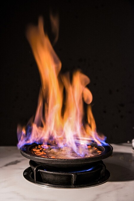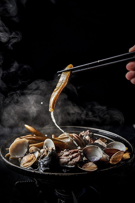店內提供近40種台式鍋物選擇,而超人氣菜單「萬客燒酒雞鍋」是初訪必吃,以整罐19度料理米酒做為湯底,經中藥材與米酒燃點揮發,加入獨門高湯搭配烏骨雞,還可依照個人喜好選擇全燒、半燒、不燒的料理方式,想要暖胃微醺的人必須試試。