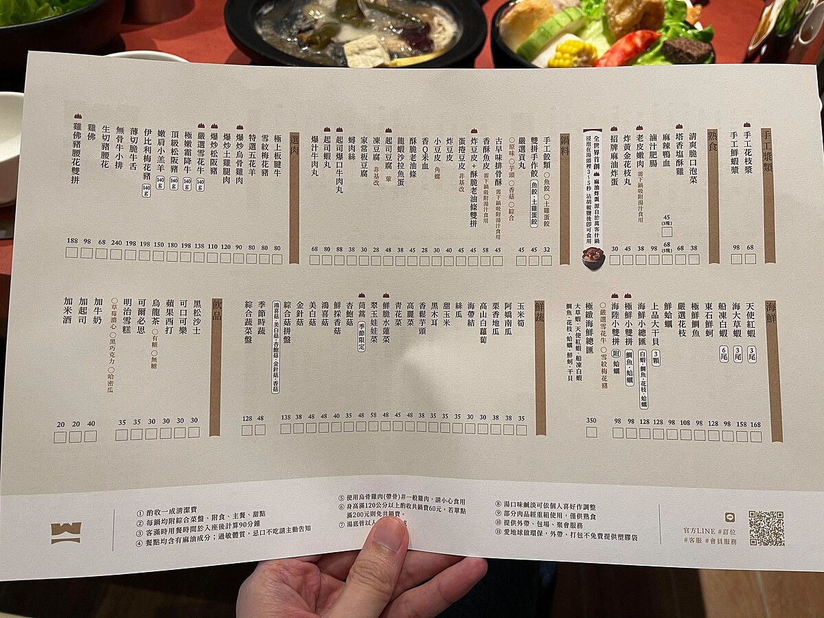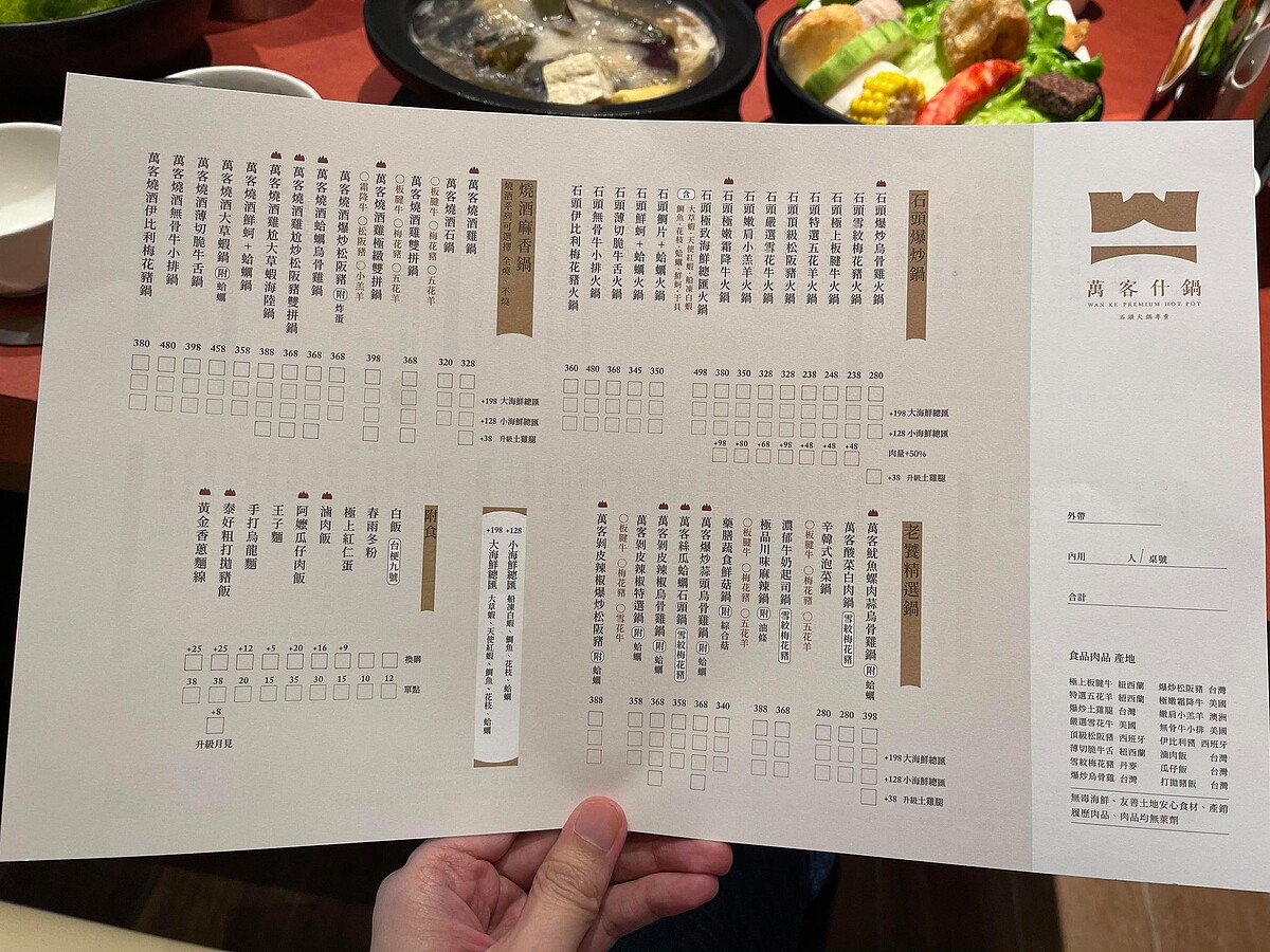 《萬客什鍋》菜單