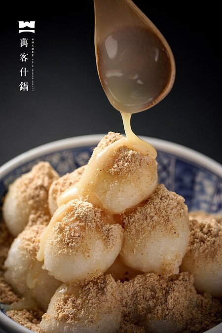 靈感來自庶民甜點白糖粿,也是七夕祭拜七星娘娘應景食品。一般白糖粿形狀多為條狀,而萬客「雲朵白糖粿」以糯米做成米糰再油炸,經改良呈現圓雲朵狀,炸後加上花生糖粉及煉乳,入口Q彈甜蜜,越吃越涮嘴。