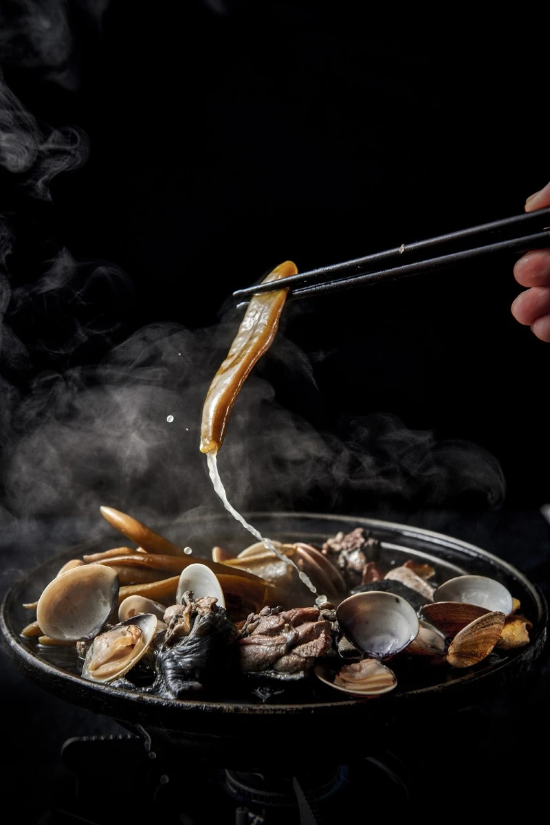 另外還有湯頭清甜微辣的「剝皮辣椒烏骨雞鍋」、蒜香迷最愛的「爆炒蒜頭蛤蠣烏骨雞鍋」,以及「絲瓜蛤蠣石頭鍋」,都是《萬客什鍋》的特色之選。