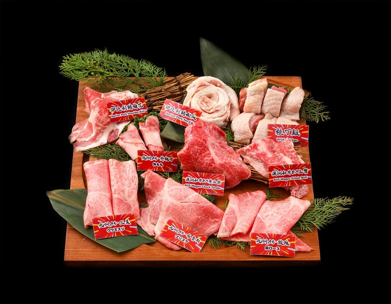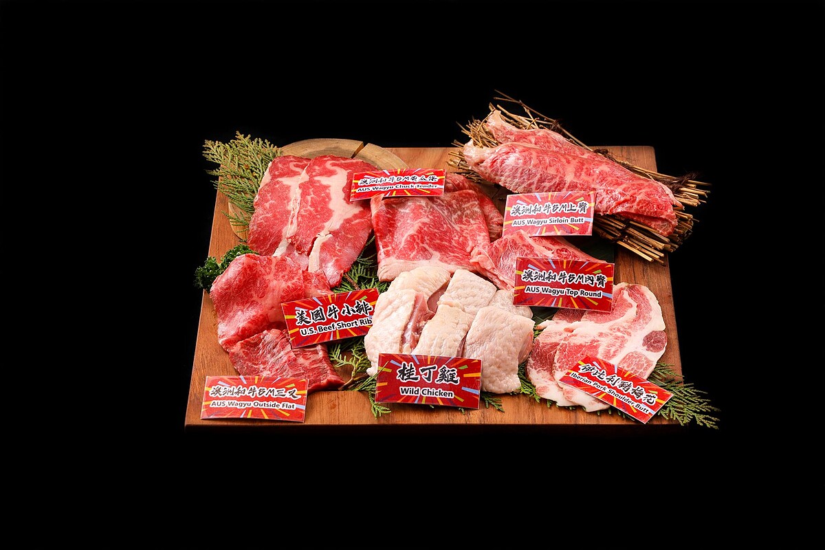 日本A5和牛8個精選部位、澳洲Blackmore 9+純血黑毛和牛、美國牛、桂丁雞腿、伊比利豬梅花、丹麥豬松阪無限供應。