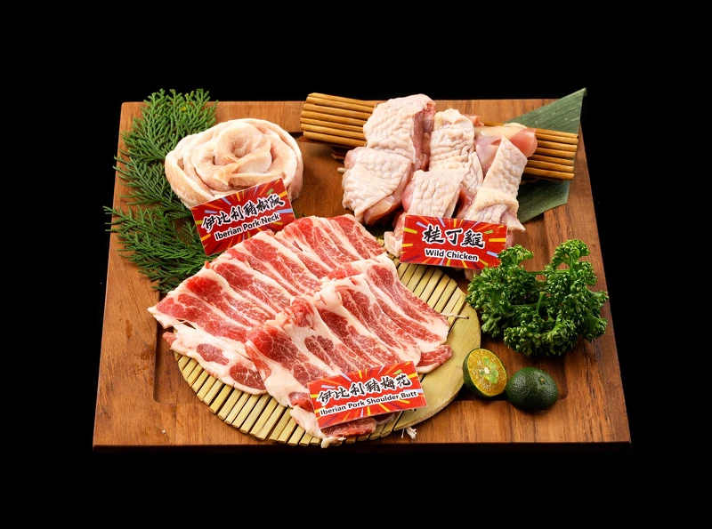 桂丁雞腿、伊比利豬梅花、丹麥豬松阪無限供應。