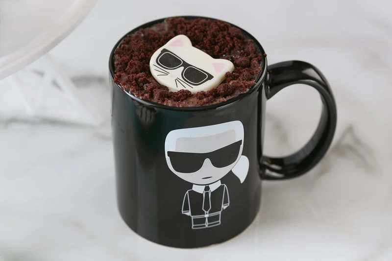 而老佛爺曾說過:「我愛巧克力,甚至超想買巧克力香味的香水!」因此下午茶特別推出「邱比特醇濃巧克力」,用法芙娜70%巧克力為基底,搭配無糖黑豆漿、烘烤蜂蜜燕麥片製成,上方還有愛貓Choupette的造型巧克力片,還用IKONIK咖啡杯盛裝,從視覺到味覺都充滿時尚傳奇的精隨,是絕對不能錯過的夢幻飲品。