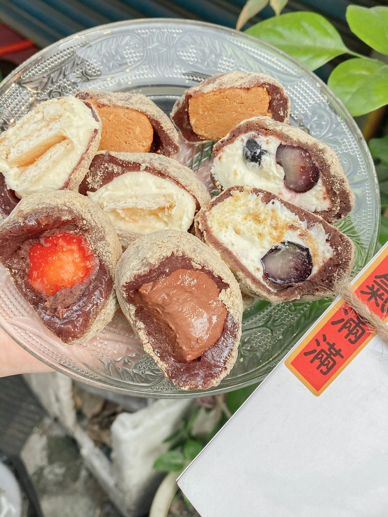 口味有紅豆、芋頭、花生、生巧克力、蜂蜜生乳酪、水果大福、赤糖小麻糬…等,還有牡丹餅就是類似日本的萩餅,以及各式各樣季節限定口味,讓大家可以依照喜好選擇!