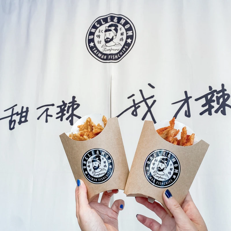 叔炸甜不辣媽台南創始店的店面設計走簡約文青風格,將細長的甜不辣裝在薯條盒中真的太可愛啦!目前招牌共有5種口味,分別是原味、椒鹽、梅粉、芥末、朝天椒,除了招牌口味外,店內還會不定期推出期間限定口味像是炙燒起司、煉乳、巧克力、明太子、花生...等,每一種口味都讓人好想吃!