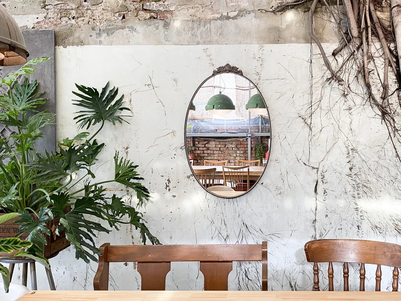 咖啡廳以老屋改建打造成玻璃屋的空間,店面更顯得寬敞明亮,最特別的是保留的斑駁的磚瓦牆面、地磚,再搭配綠意植栽、各式歐洲老件點綴下,每一個角落都獨樹一格,又能和諧地融入彼此,無論坐在哪裡都能拍出人生美照!