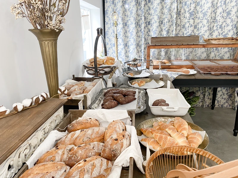 將經過時間洗滌的老宅融入了歐洲老件,充滿復古氛圍且每個角落都讓人驚喜,一推開店門就能感受麵包陣陣香氣,每一款麵包看起來都令人食指大動!