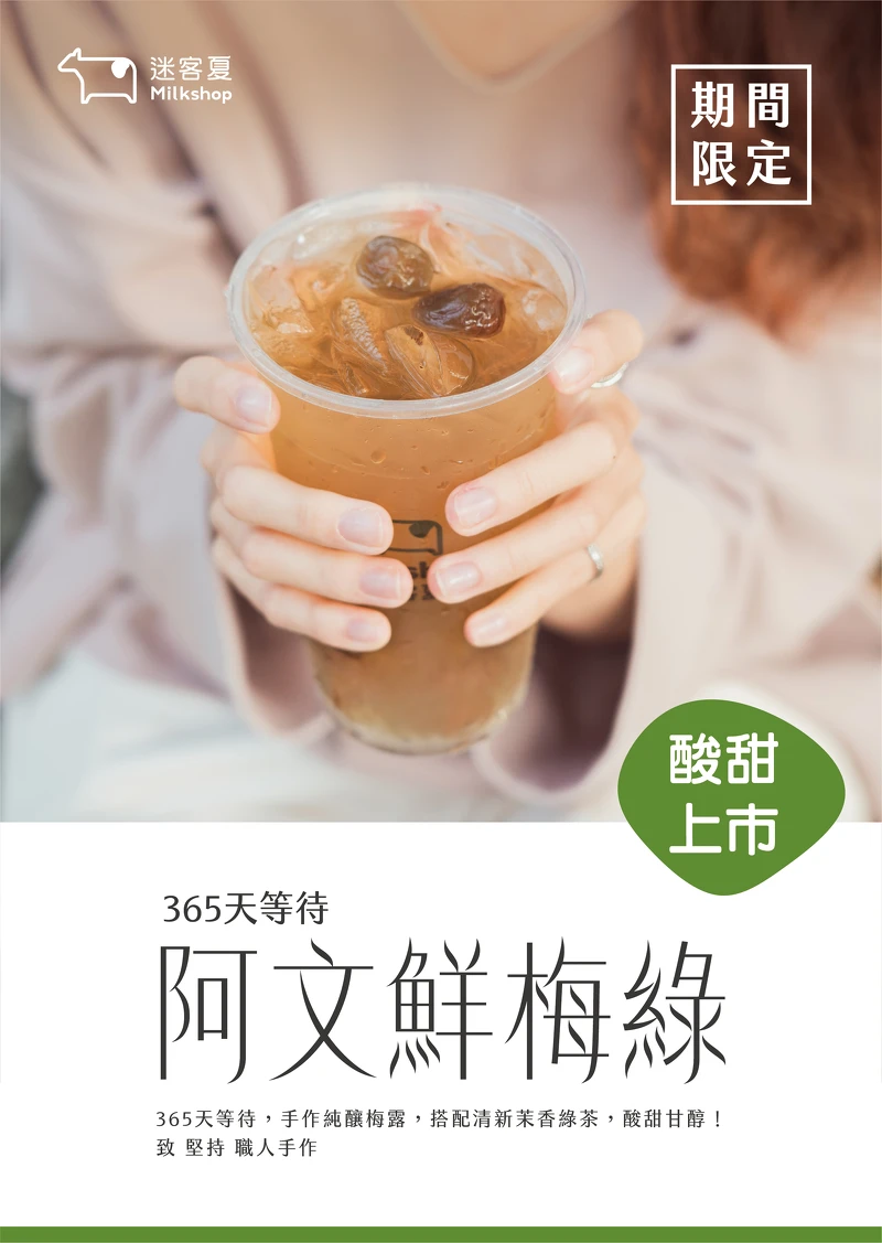許多《迷客夏》的忠實粉絲,肯定也對「阿文鮮梅綠」念念不忘,這款季節限定口味由梅子職人阿文先生使用古法釀製梅露,將風乾後的梅子倒入蜂蜜和糖,釀製出不添加防腐劑、人工甘味劑與色素的美味梅露,加上茉香綠茶調製而成,絕對是夏日最消暑的必喝之選。
