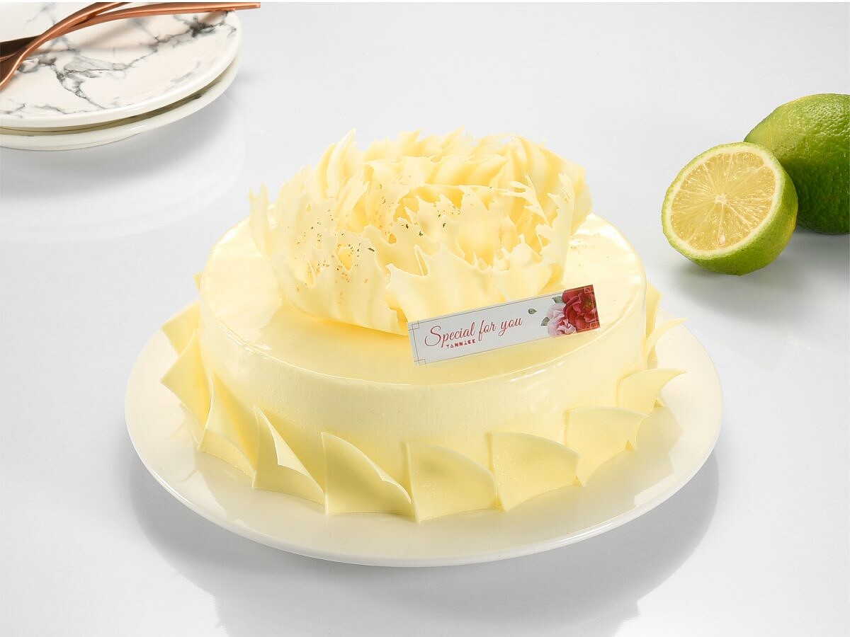 外表撒上奢華的金箔點綴,高貴又優雅的設計宛如女王登場!以泡芙蛋糕為基底夾入新鮮的檸檬內餡,加入覆盆子果粒、白巧克力慕斯,打造出酸甜迷人、清爽不膩口的母親節蛋糕!