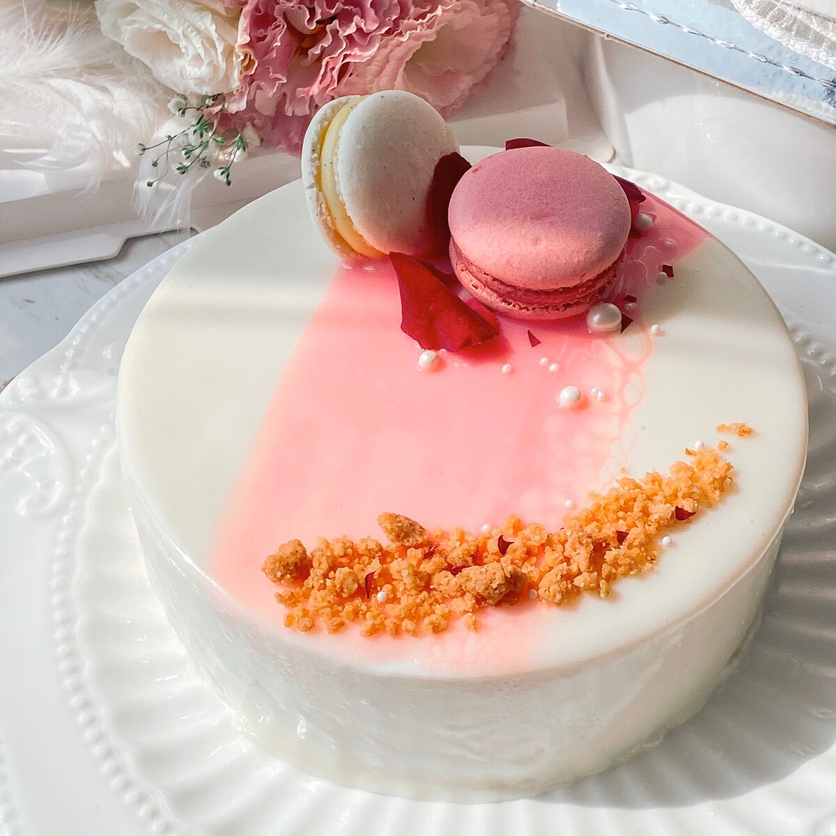 不喜歡太浮誇的人也可以選擇這款典雅路線的鏡面蛋糕!