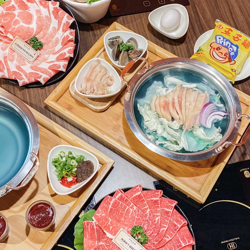 號稱新北龍蝦王的樂崎火鍋民生店把老母雞湯底變成絕美的湖水藍湯底,看似清澈的藍色湯頭品嚐起來卻是超濃郁口感,每一口都超涮嘴!