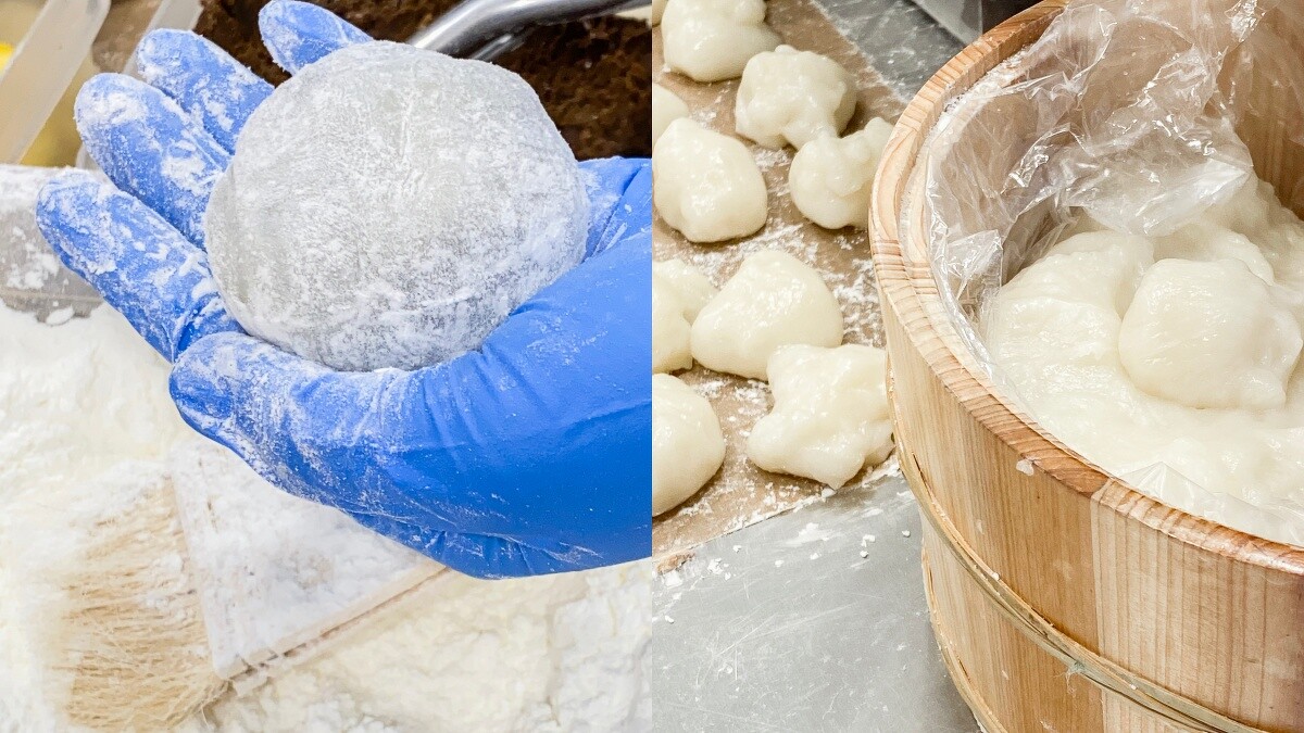 不只可以加入古早味食材,居然也可以把起司蛋糕包進麻糬中,在加入草莓卡士達,一口咬下感受幸福的滋味!