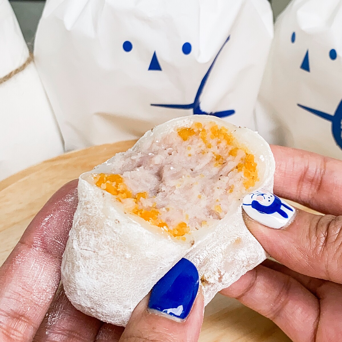 在麻糬中加入肉鬆讓人超驚喜!入口品嚐感受肉鬆與芋泥完美結合的多層次口感,芋頭控也可以點選這款嚐鮮!