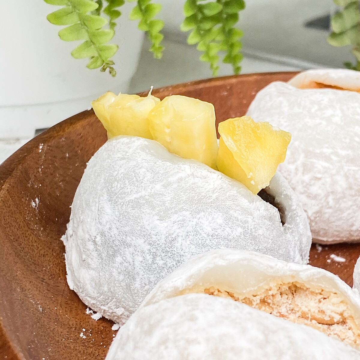 嚴選金鑽鳳梨再加入阿薩姆紅茶帶出鳳梨的香氣和口感,而餘韻帶有茶香溫潤的氣息,夏天來一顆清甜不膩的麻糬剛剛好。