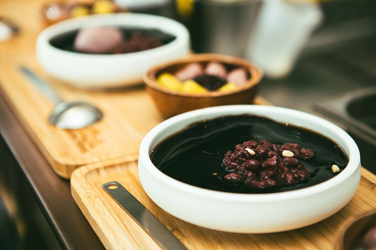 將招牌的萃嫩仙草再搭配香甜綿密的芋泥,佐以芋圓、薯圓、紫米、紅豆、白玉珍珠豐富盛盤,每一口都有不同滋味超驚喜!