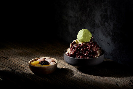 抹茶嫩仙草雪花盛盤