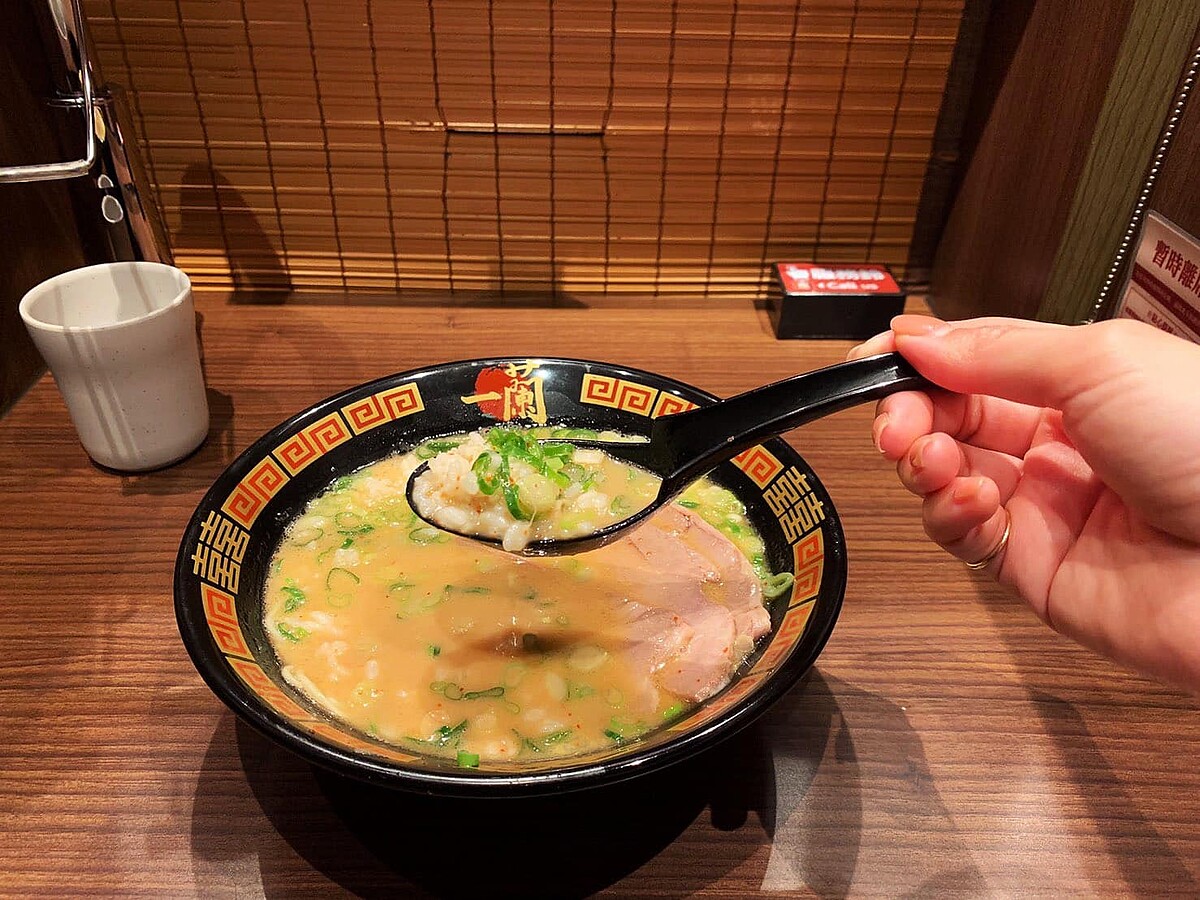 招牌必吃的豚骨拉麵在日本有盛傳的隱藏版吃法,把拉麵吃完後將單點白飯直接加入湯裡,再放入青蔥與叉燒,一碗美味的豚骨雜炊就完成啦!