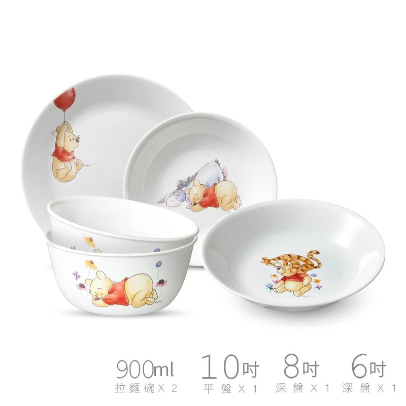 品項包括小熊維尼系列6吋、8吋深盤,小熊維尼系列10吋平盤及小熊維尼系列900ml拉麵碗2個
