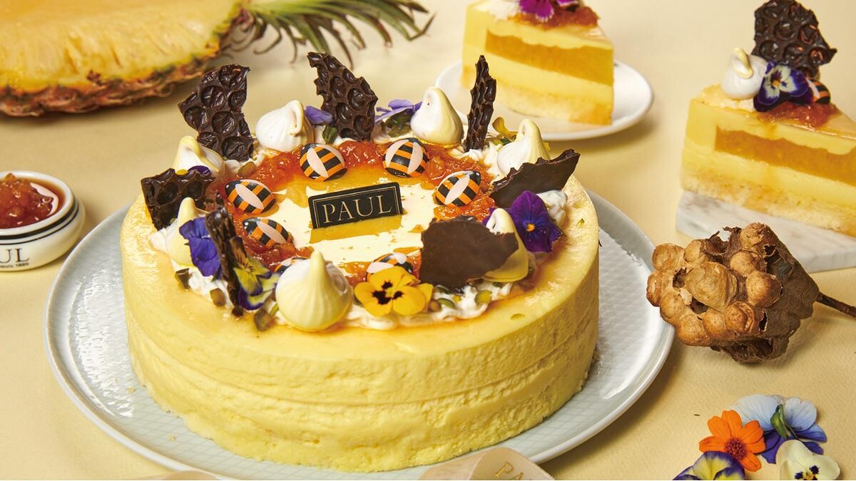 PAUL將2021年度話題水果「鳳梨」融合其中,主廚研發「晶鑽飛舞蛋糕」,以法國進口的白巧克力融合新鮮鳳梨製成的慕斯與主廚特製的鳳梨布丁,分層夾於海綿蛋糕內,最後鋪上手工熬煮的焦糖鳳梨,並以蜂蜜香緹、蜂巢巧克力點綴,從中帶出家人團聚的歡樂印象。