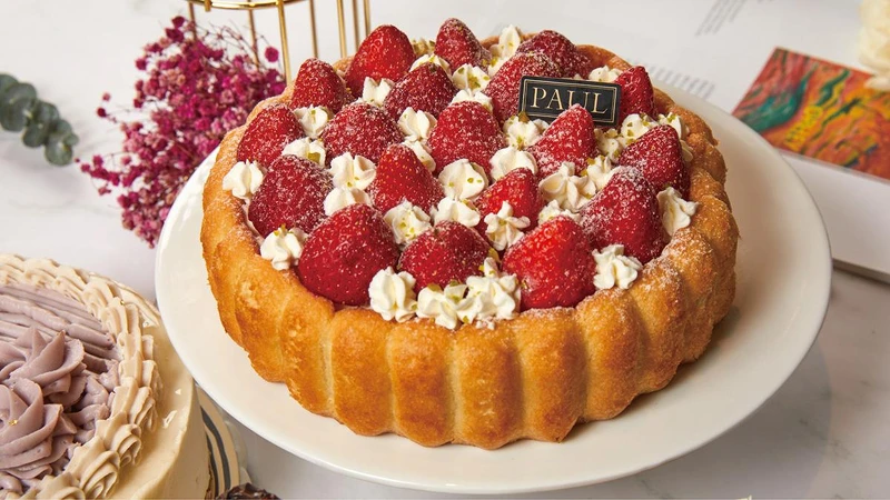 PAUL「草莓芙蕾雅夏洛特」是草莓控無法抗拒的愛!以歐洲傳統手指餅乾圍邊,海綿蛋糕為底,加上法國特有的BAVAROISE(奶香蛋黃餡),口感近似慕斯,再擺上滿滿的草莓與鮮奶油製成的原味香緹作為點綴,入口先感受到手指餅乾的外酥內軟,接著是濃郁柔滑的內餡與鬆軟的海綿蛋糕,每口都讓人意猶未盡的酸甜滋味。