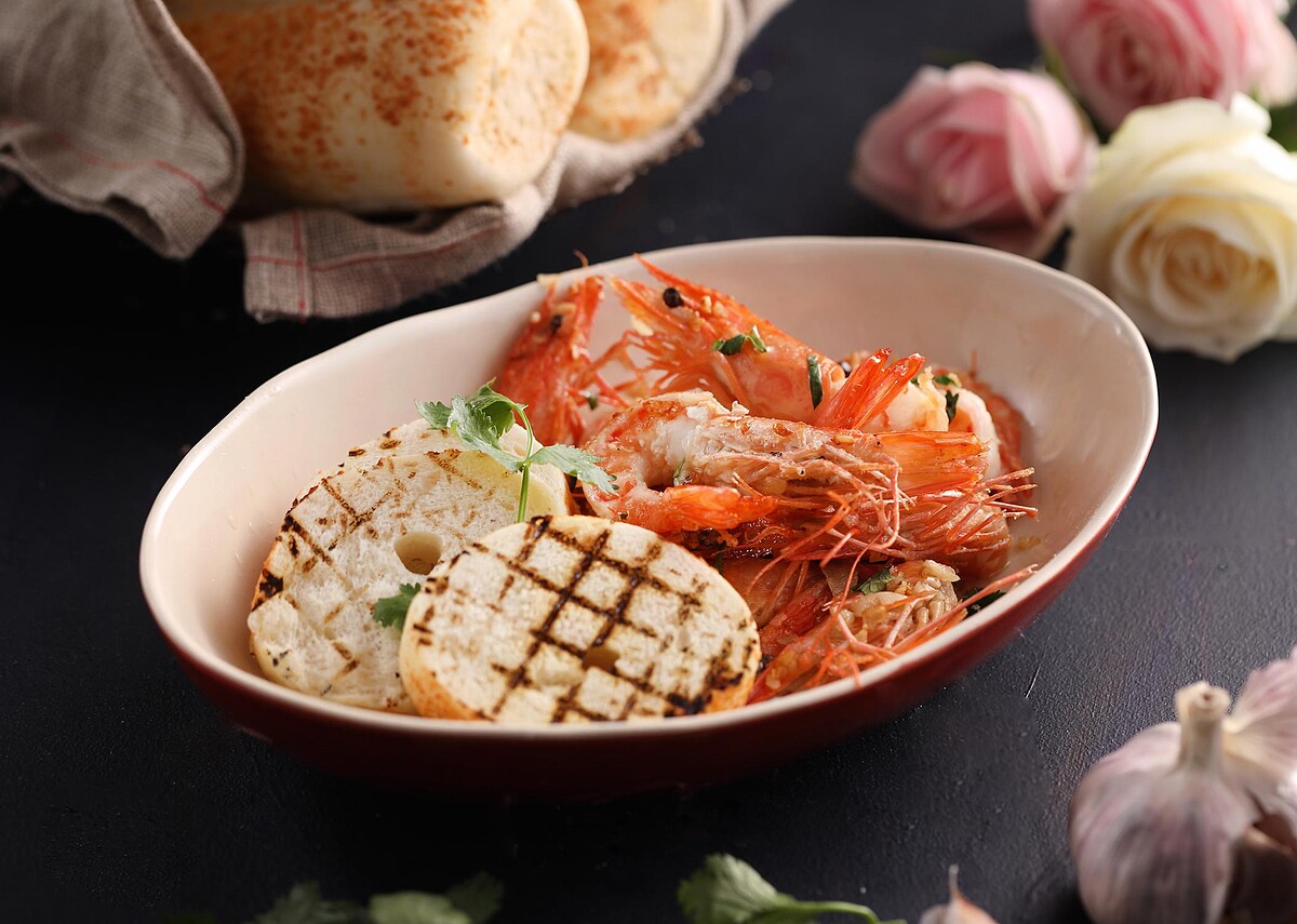 這道餐點是西班牙道地的下酒菜,以初榨橄欖油爆香大量蒜片極拌炒新鮮草蝦,鮮蝦在濃郁的蒜香下更凸顯其鮮甜美味,搭配沁涼啤酒最對味!
