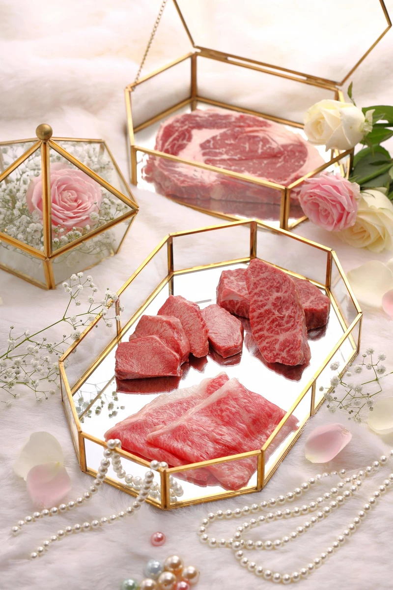 最讓人驚喜的是這裡的肉品以珠寶盒珠寶盒盛裝上桌,吃的到日本A5和牛油花分布細緻豐富的紐約克、肌理細嫩肉汁豐富的板腱、精瘦柔嫩的菲力等上選部位;澳洲9+和牛則是使用厚切牛舌口感Q彈有嚼勁、風味飽滿的橫膈膜、板腱、肋眼、牛五花等最能呈現肉感個性的部位。由專人燒烤上選部位烤至最佳熟度,讓大家每一口都吃到肉品的絕佳風味!