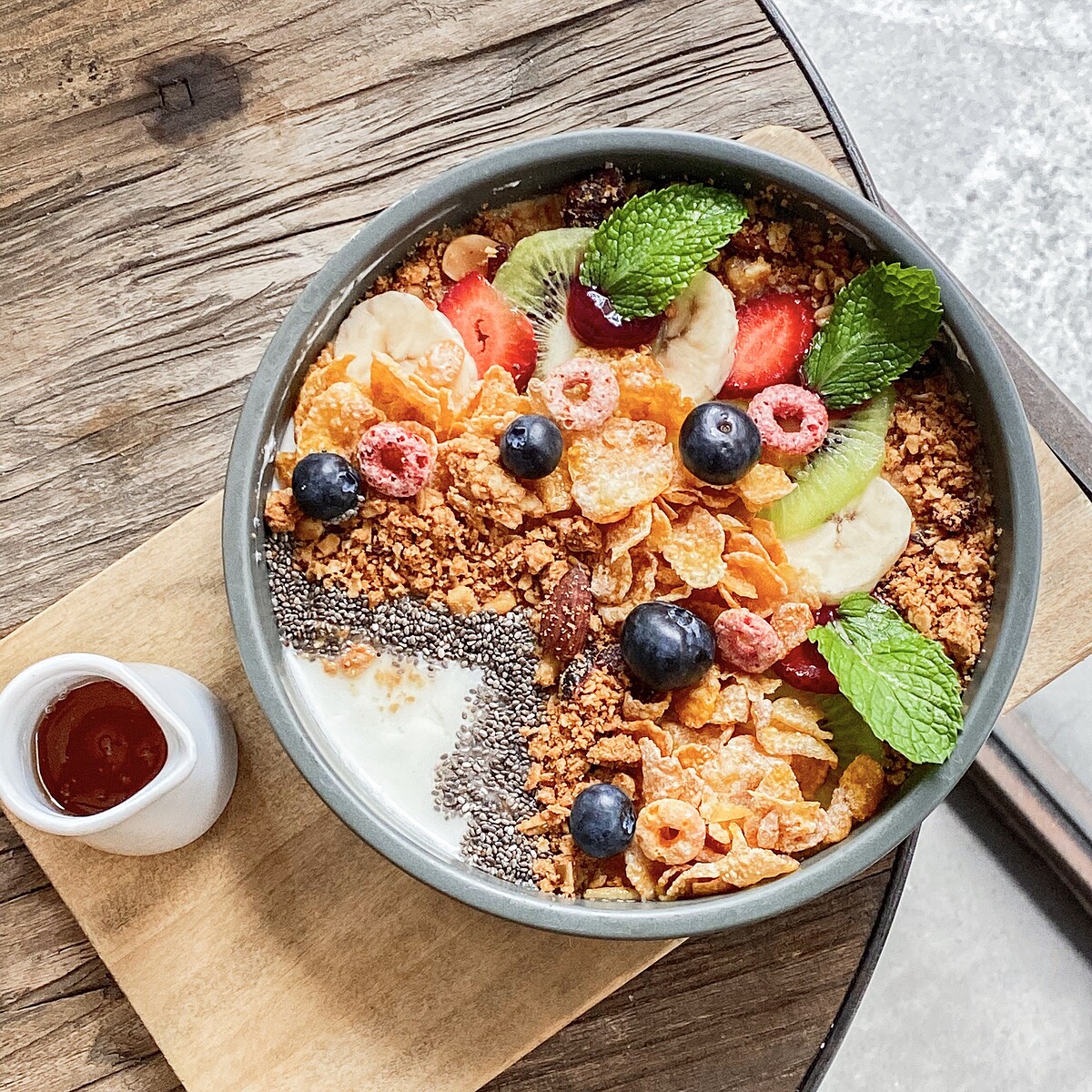 以日本菌種為基礎,自行發酵製成每天新鮮原味優格,搭配當季新鮮水果、果乾及烘焙坊自製 Granola、麥片,加上蜂蜜恰好的點綴,好吃又好拍,清爽無負擔!